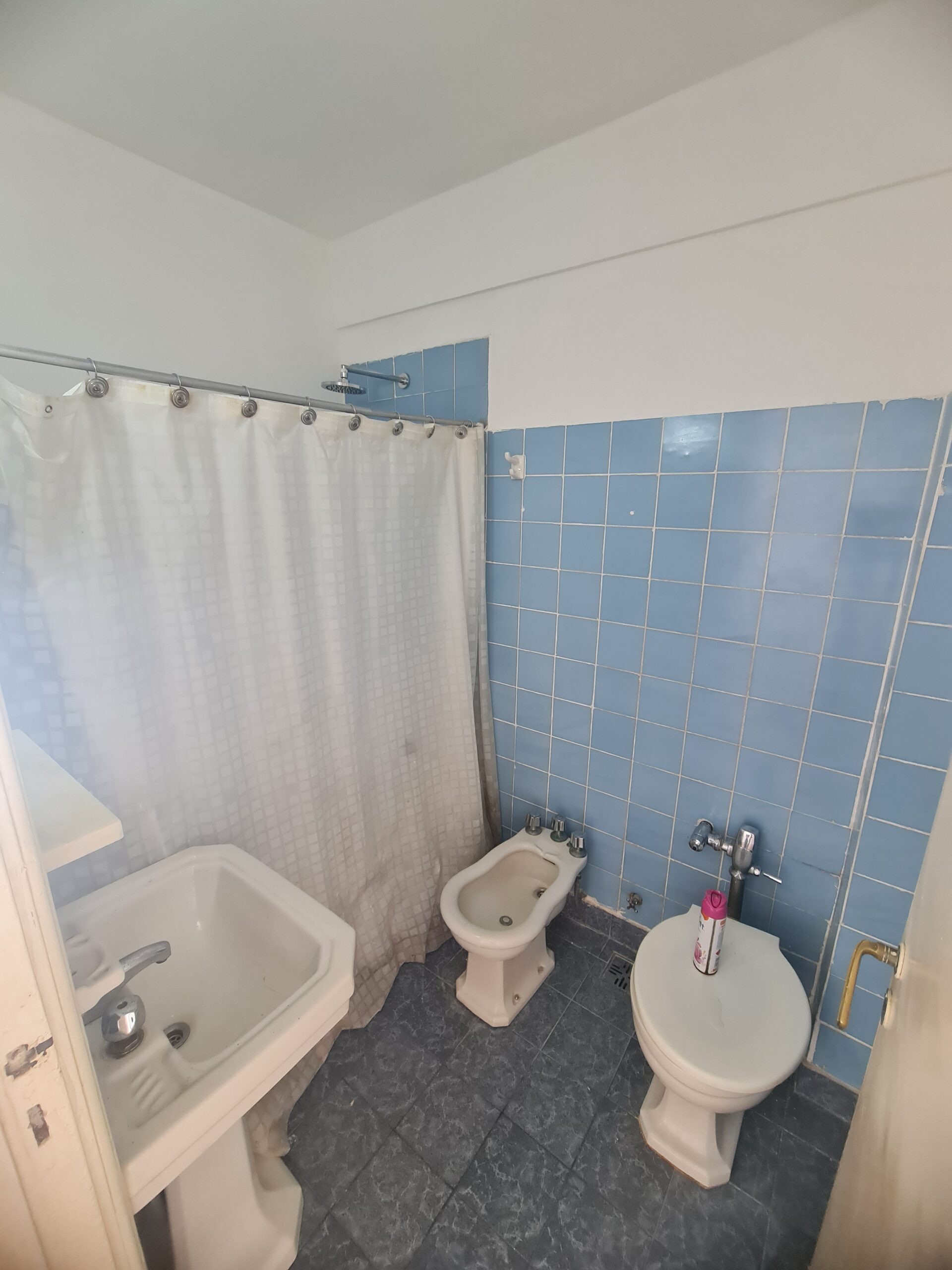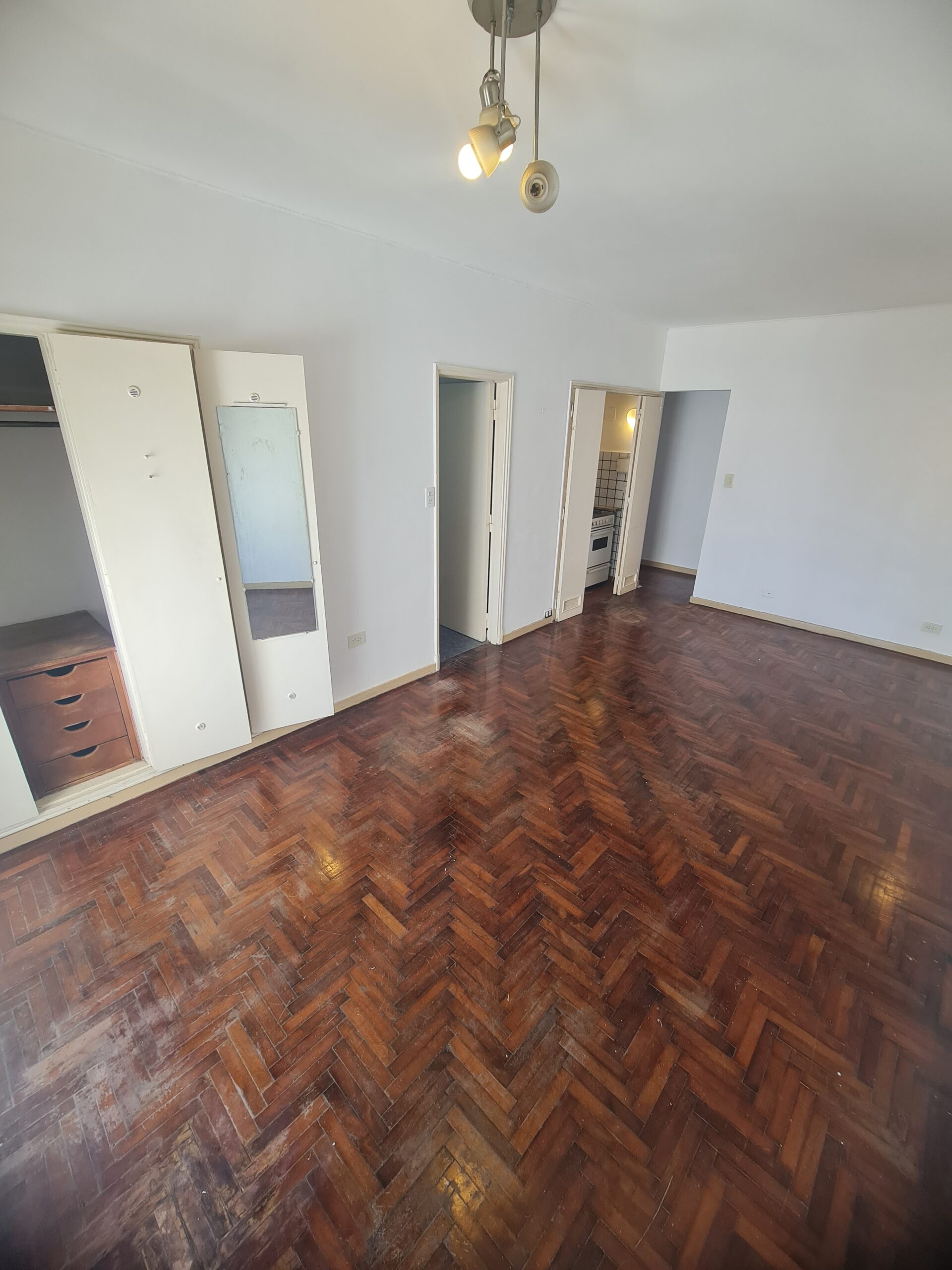 Departamento tipo monoambiente con una superficie total y cubierta de 25 m². Ubicado en un edificio de zona urbana, este departamento cuenta con un ambiente principal integrado, pisos de madera y ventanal que otorga acceso a un balcón con vista a la ciudad. La cocina independiente está equipada con muebles bajo mesada y cocina a gas. El baño, de estilo tradicional, incluye ducha, inodoro, bidet y lavamanos, con revestimiento cerámico en tonos azules. La disposición de los ambientes permite aprovechar el espacio para diversas funciones, ideal para quienes buscan practicidad en un entorno compacto.